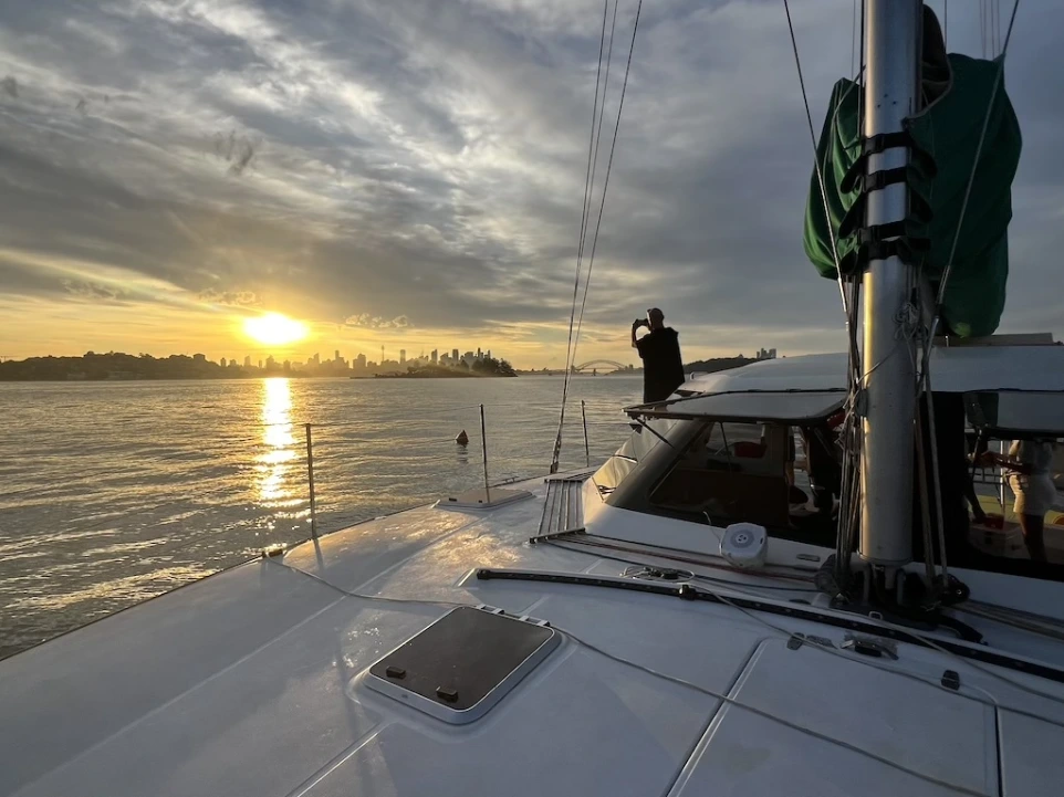 Sirocco is our private catamaran charter on Sydney Harbour — designed for relaxed celebrations, iconic sightseeing, and easy group hosting. Cruise past the Opera House and Harbour Bridge, drop anchor in a calm bay for a swim, and enjoy a comfortable layout made for socialising.